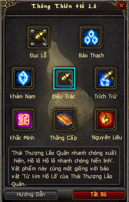 Bước 1: | Quý Thượng Tiên mở giao diện Thông Thiên Hồ Lô để tiến hành điêu khắc Bảo Thạch.