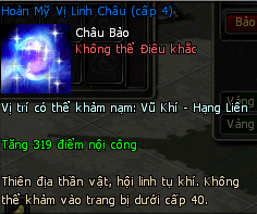 Bước 5: | Sau khi chuẩn bị đầy đủ, nhấn chọn "điêu khắc Bảo Thạch", hệ thống sẽ chọn 1 trong 3 loại để tiến hành nâng cấp: Ưu Chất; Tinh Xảo; Hoàn Mỹ.