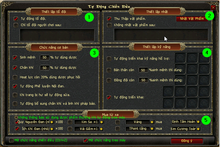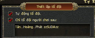 - Tự động tổ đội cho phép tự động nhận lời mời tổ đội, yêu cầu gia nhập đội.