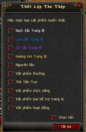 - Không nhặt vật phẩm sau: là lựa chọn loại vật phẩm rác không mong muốn nhặt được.
