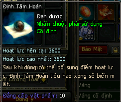 Vật phẩm cần thiết với chức năng này là Định Tâm Hoàn