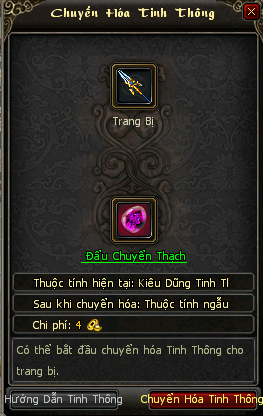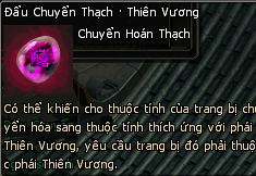 Bước 3: | Có 6 loại Đẩu Chuyển Thạch dành cho 6 môn phái. Thượng tiên có thể đặt Đẩu Chuyển Thạch tương ứng và Trang Bị vào như sau là có thể tiến hành Chuyển hóa thuộc tính. | ![]() |